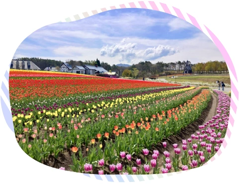 4/24(金)牧歌の里の天気《晴れ》チューリップ畑5分咲き!満開のチューリップ畑は間近です♪