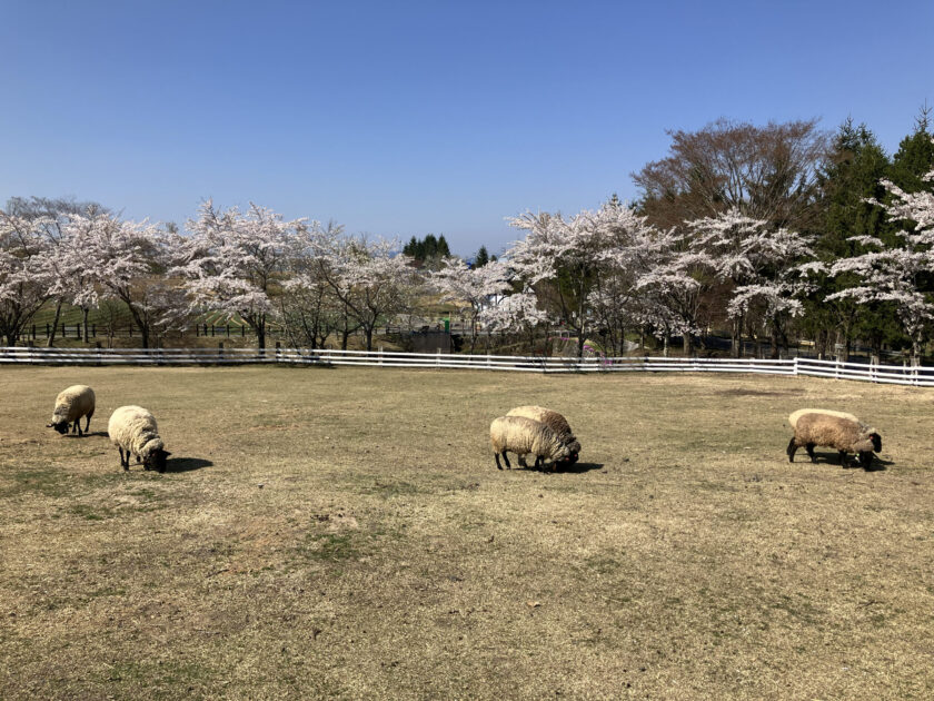 放牧場の桜は満開になり、今日は風が強いので少しづつ散って青空に舞い上がっていきます。