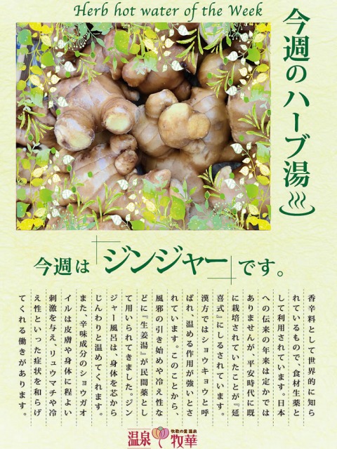 牧歌の里温泉『牧華』 今週のハーブ湯『ジンジャー』