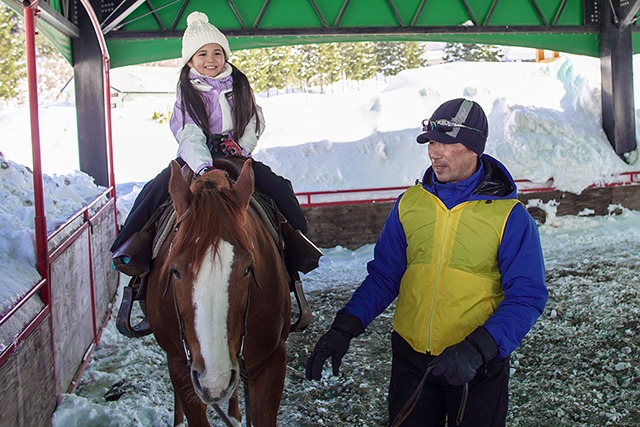 雪上をポニーに引かれてのーんびり。雪国気分を満喫してね。