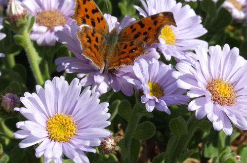 ダルマギク 分類:キク科 開花時期:10~11月 海岸に多く生える野生のキクで、日本原産の花です。横に広がりずっしり咲く様が達磨に似ていることから、この名がついたそう。多重に重なった細長い花びらが、素朴なかわいらしさを作っています。 花言葉:打たれ強い