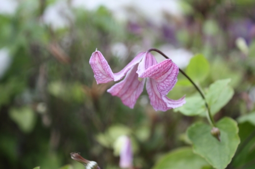 テッセン 分類:キンポウゲ科 開花時期:8月~ 蔓性の植物。花びらのように見える部分は花のがくで、その中に細い花びらが重なった本当の花が咲きます。蔓が針金のように硬くて丈夫なことが名前の由来といわれます。 花言葉:しばりつける、高潔