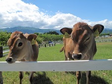 屋根に風見鶏のついている牧舎は、向かって右側が牛舎、左側が馬房となっています。 ジャージー牛の搾乳は朝夕2回。 ここで搾られたミルクで牧歌の里の乳製品はできています。 ジャージー牛には、1頭1頭みんな名前がついて性格も違うんですよ。 春にはジャージー牛や羊の赤ちゃんも次々生まれます。 かわいい赤ちゃんをぜひ見に来てください。