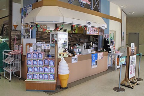 メインハウス1階にあるミルクショップです。 牧歌の里オリジナルのソフトクリーム、牛乳、ヨーグルトなどの乳製品がお召し上がりいただけます。