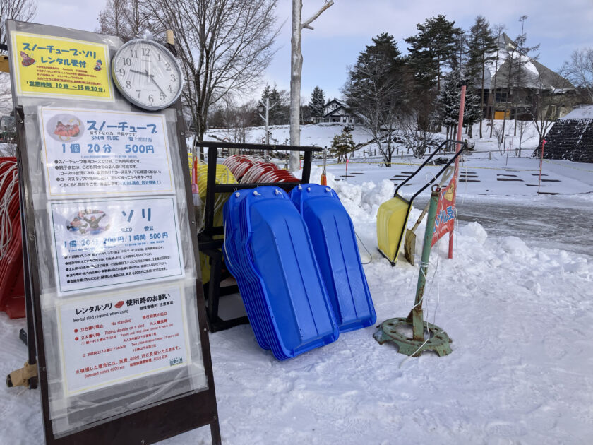 ただいま、スノーアクティビティのレンタルは「ソリ」だけとなっています。