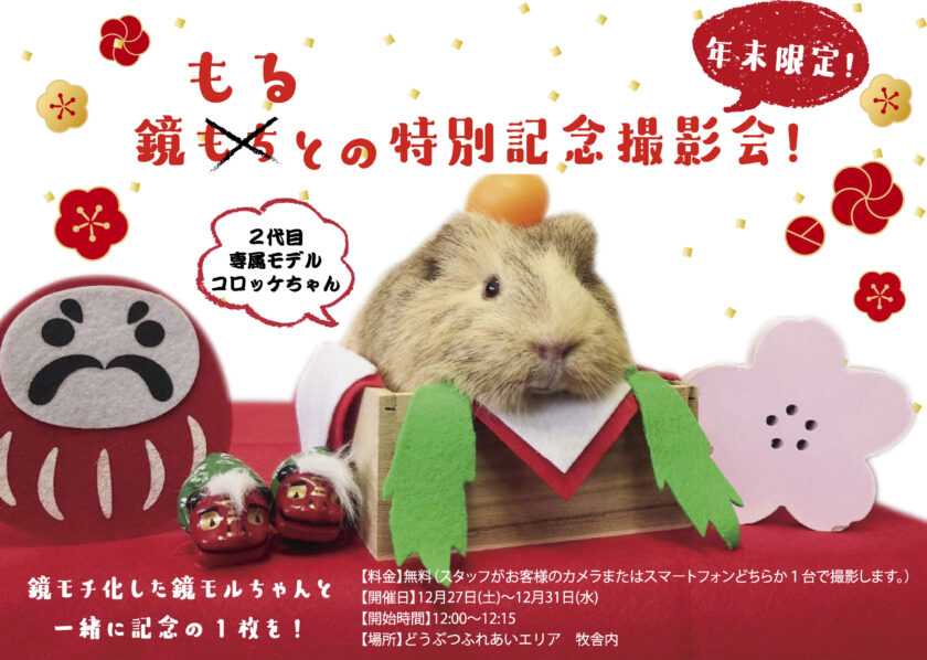年末年始はほっこりする特別イベントを開催いたします!今年も、大人気の「ころっけ」ちゃん扮する「鏡モル」が登場♡可愛すぎて心をわしづかみにされること間違いなし!