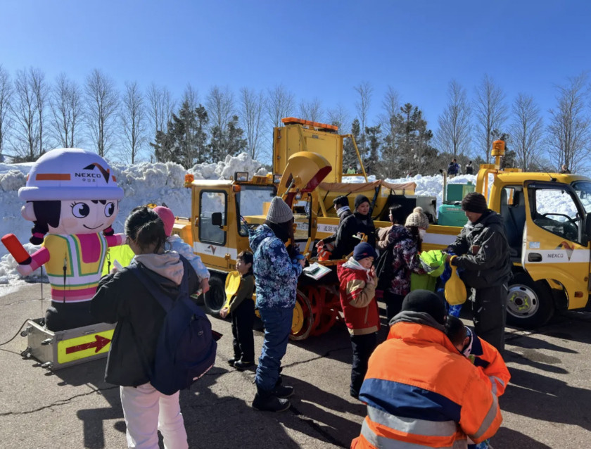雪まつりのNEXCO中日本のブースでは、高速道路パトロールカー(通称:黄パト)がやってきます。普段は見ることができない車の中や、一緒に撮影もできますよ!(画像は昨年の雪まつりの様子)