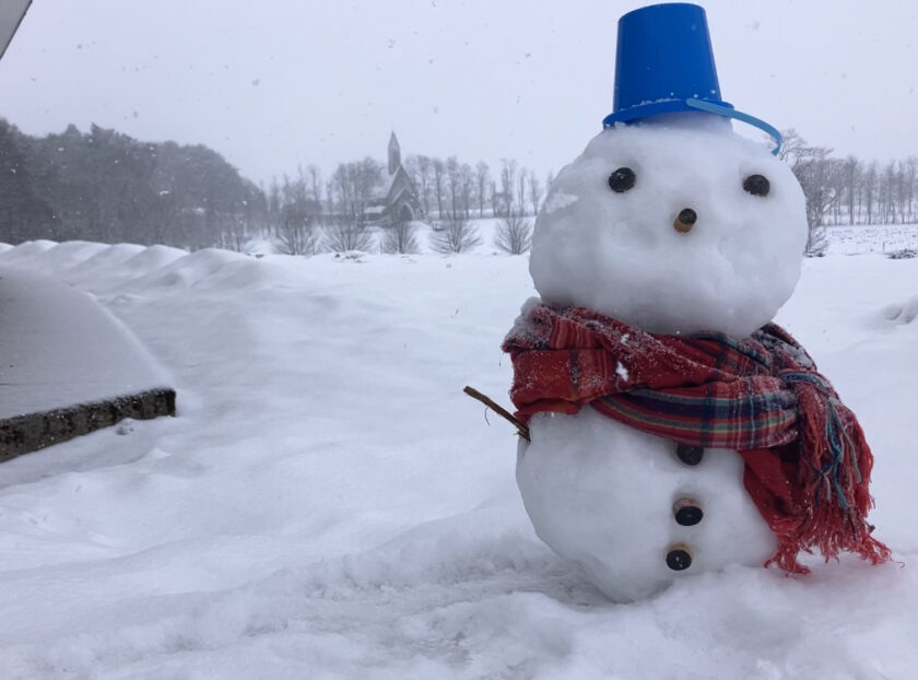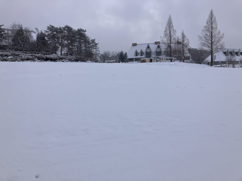 ようやく、ようやく、本格的に雪が降り始めました。でも、まだ10cmも積もっていません。振り方は弱めなので、積雪量は少なそうです。でも、一面の雪の銀世界は取り戻せましたよ〜!