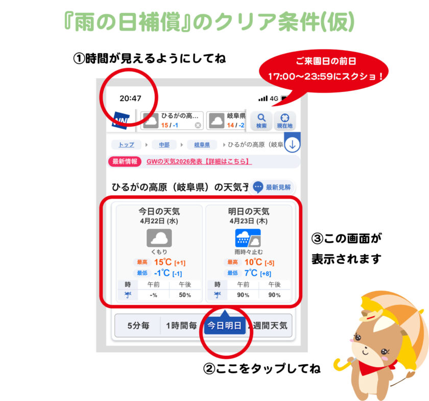 気温が下がり寒いです!厚手の上着や毛糸の手袋があると良さそうです。今日は1日雨予報なので、防寒も兼ねてレインコートや、ウインドブレーカーなどがおすすめです。
