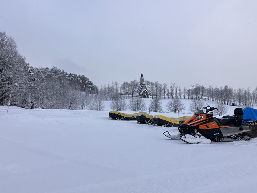 雪の景色をクルージングできる、スノーラフト。ただいま、最高