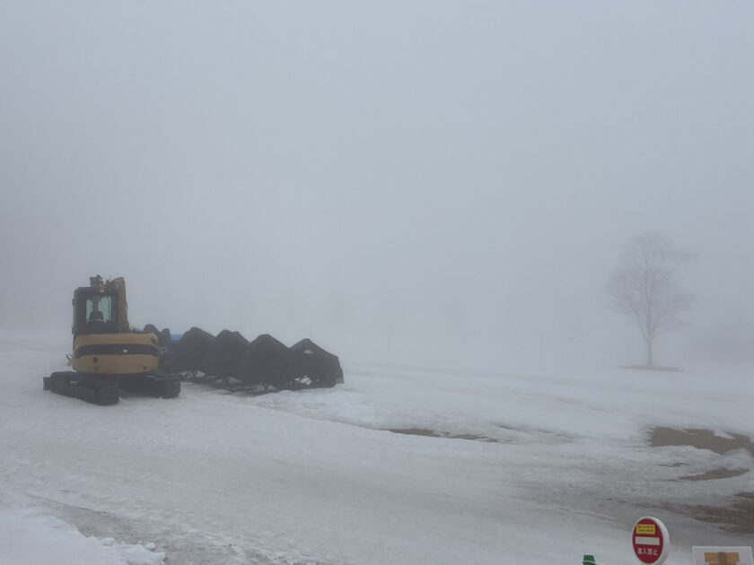 来週は気温が下がる予報なので、駐車場に残っている雪をかき集めて補修をしながら、雪遊びが長く楽しめるようにしていきます。