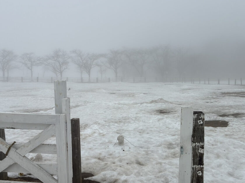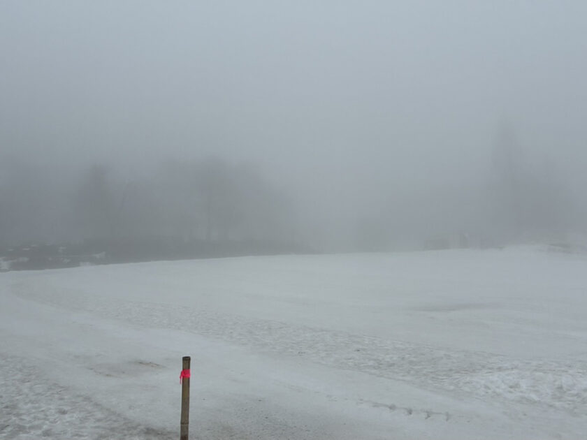 外は、気温が暖かい影響で霧に包まれています。雪はかなり減りましたが、まだ雪合戦や、小さな雪だるまなら作れそうな週末になりそうです。