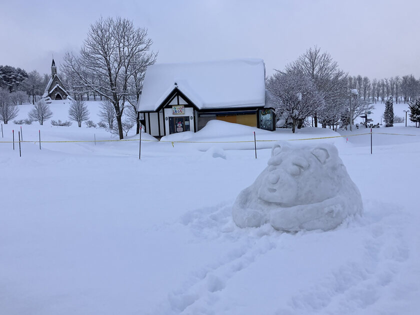 新たに10cmくらいの積雪で、雪像も雪のパック中。