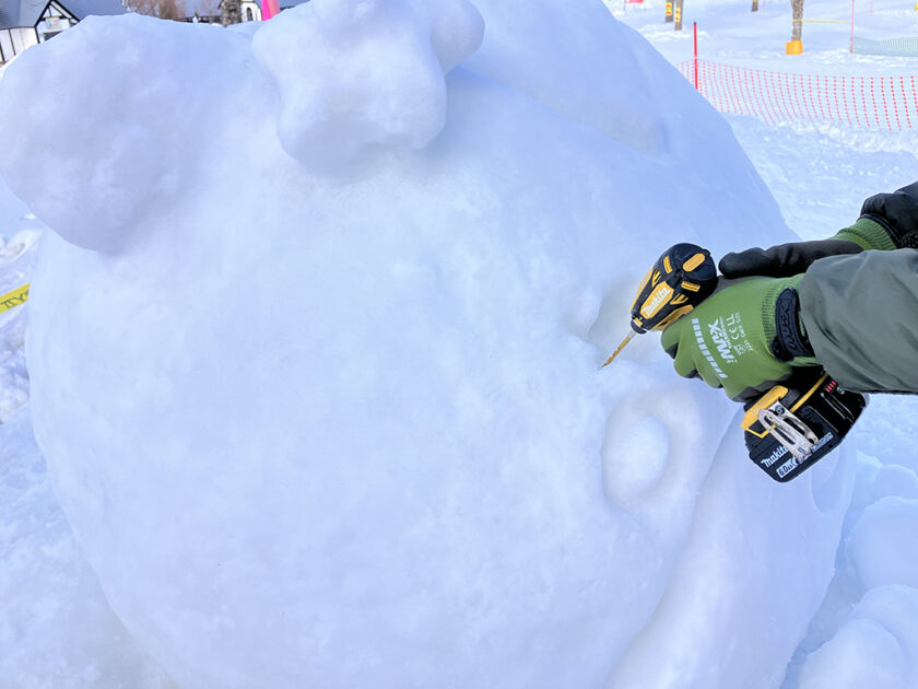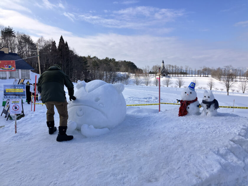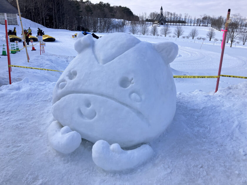 雪像あんこちゃんに、夕方まで頑張ってね♡のパワーを込めました♡