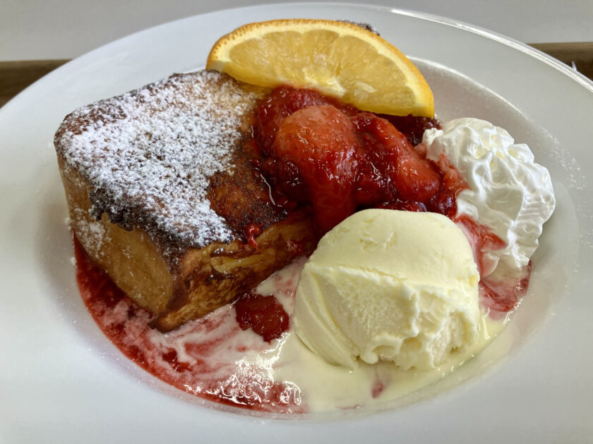 メインハウス2階の「レストラン ヒルトップ」では新メニューの「冬の贅沢フレンチトースト」が登場!卵に一晩じっくり染み込ませたフレンチトースト。ラズベリー、ストロベリーのダブルソースと、アイスを添えたスイーツランチにおすすめのメニューです。写真をじっくり撮影している間にアイスが少し溶けたのですが、フレンチトーストに染み込みとっても美味しい!アイスの冷たさとトーストの温かさのコラボも冬の贅沢な味わいを楽しめます。