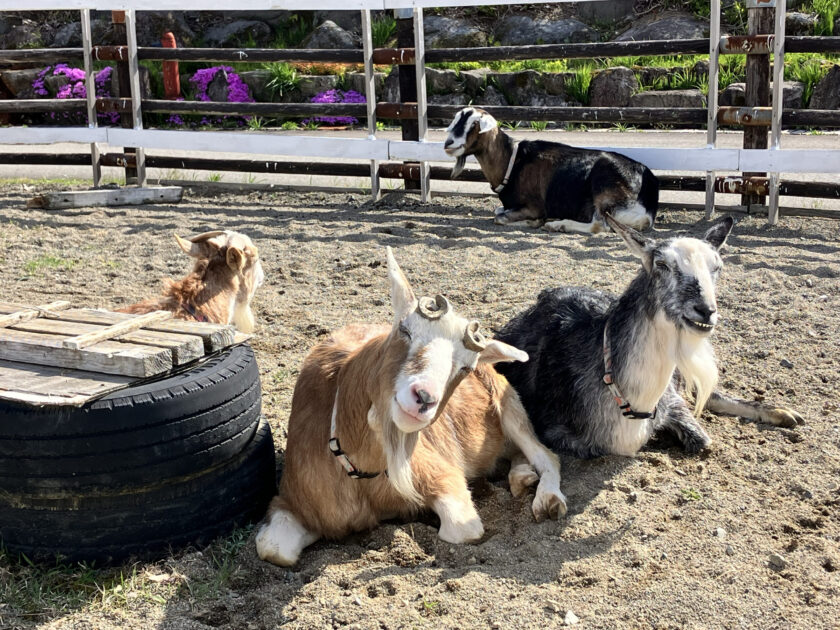 ヤギ〜ズは、牧場の仲間たちの中でもお笑い担当です。どこか微笑んでいるようなお顔に、思わず笑ってしまいます。