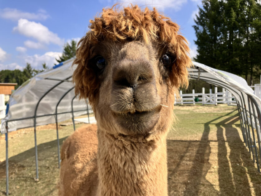 お花だけじゃなく、牧場の仲間たちも「おやつ」を待っています♡可愛い顔して催促してくるアルパカの「トム」くん╰(*´︶`*)╯♡うるうるした大きな瞳で見つめてきます。