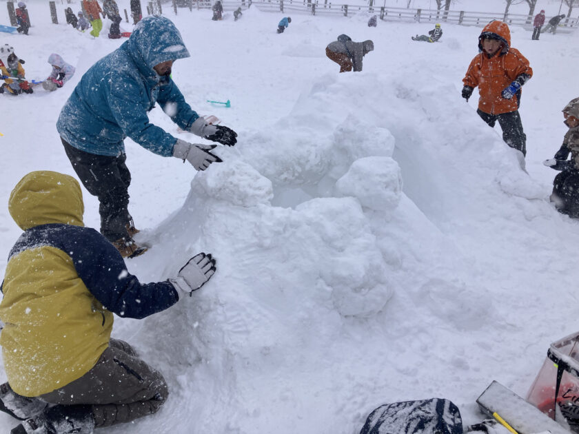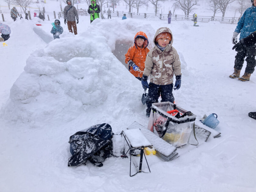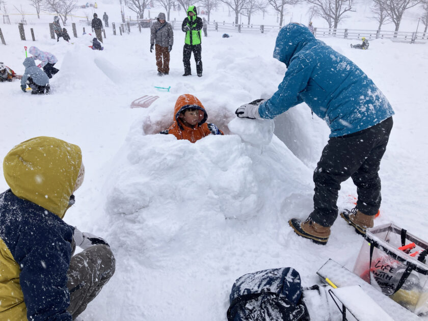 雪遊びエリアには、たくさんの「かまくら」が出来ていました。