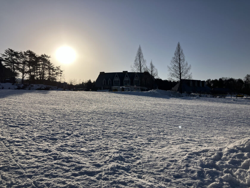日中の気温が上がってくると、雪質は緩みソリのスピードが出ないことがあります。ソリ滑りは、気温が低く雪の表面がツルツルな午前中がおすすめです。