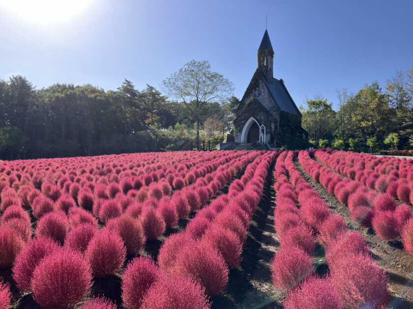 真っ赤なコキアちゃんは19日頃まで楽しむことができます。今日のように晴天が続くと長持ちしてくれるのですが。