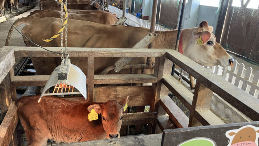ジャージー牛の「かなで」ちゃんは、もうぴょんぴょん立ち上がって遊んでいます。プラスチックの鎖が気になるようで遊んでいますよ〜。お昼寝している時が多いですが、時々、起き上がって遊んでくれます。