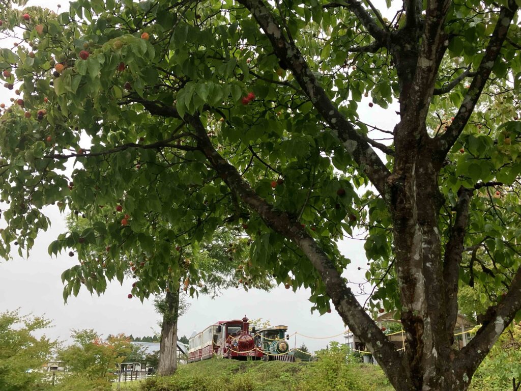 ロードトレインの前のやまぼうしの並木には、赤い実がたくさん実っています。