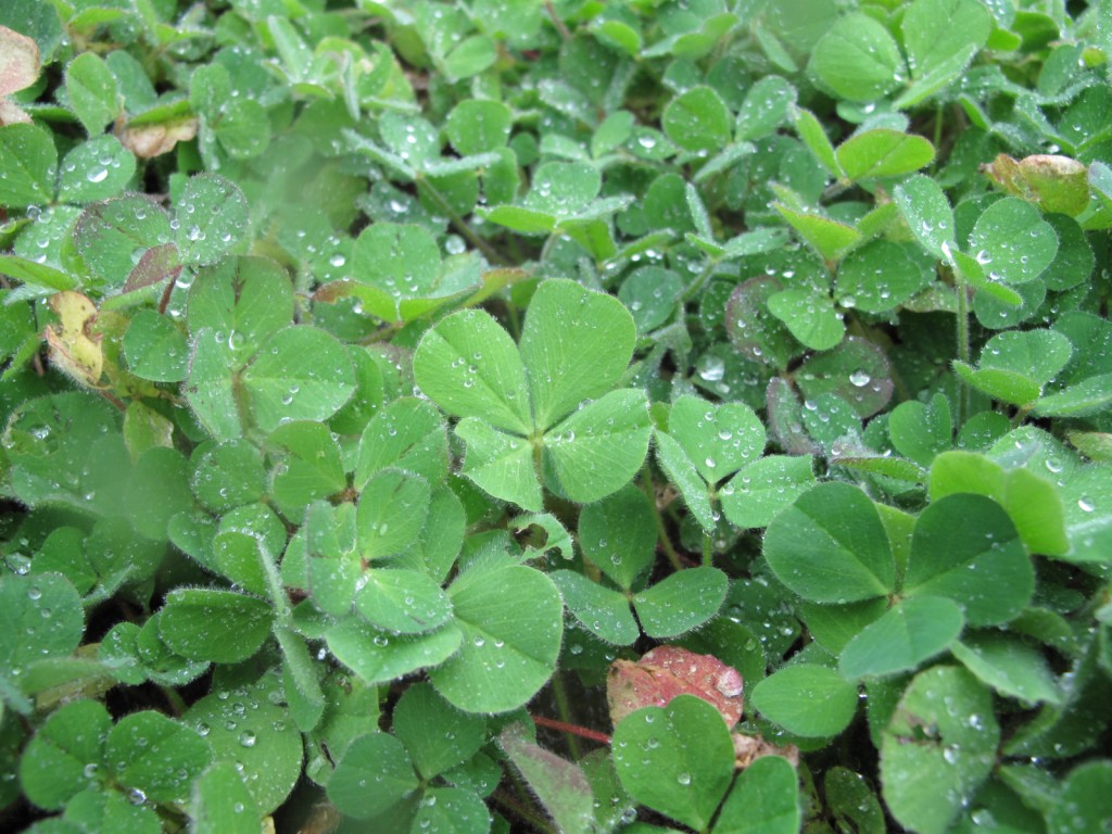 牧舎前のクローバー畑で、四葉のクローバー発見!