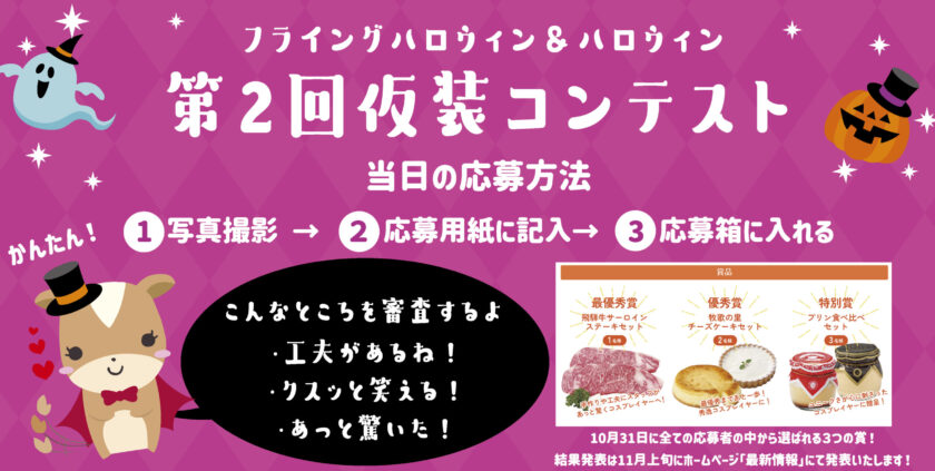 同時に「第2回 ハロウィン仮装コンテスト」も開催いたします。簡単に応募ができるので、イベント当日にぜひご応募ください。