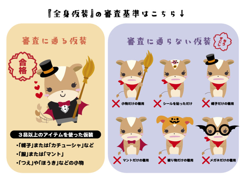 ・園内では仮装のままでお遊びください。(仮装の上から防寒着を着用しても構いません。お面や杖など遊ぶ時に邪魔になってしまうものは外しても構いません。)