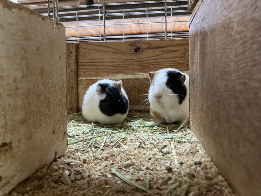 牧舎では、モルちゃんズの「みたらし」ちゃんと「しらたま」ちゃんの真剣な眼差し!朝ごはんを一生懸命食べているモルちゃんズでした(o^^o)