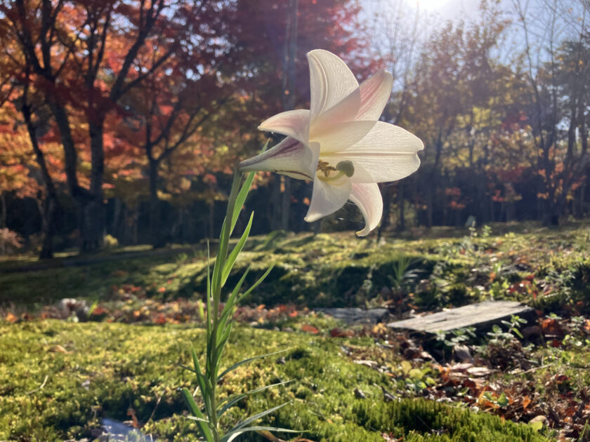 教会裏のもみじの横で、ゆりの花が1輪ひっそりと咲いていました。