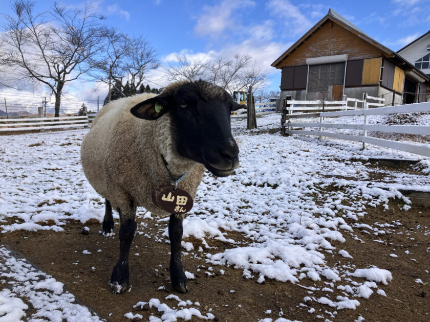 ヒツジ〜ズは雪が降っても、いつも通り( ^ω^ )モルちゃんズ、ウサギ〜ズは建物内でぬくぬくしています。