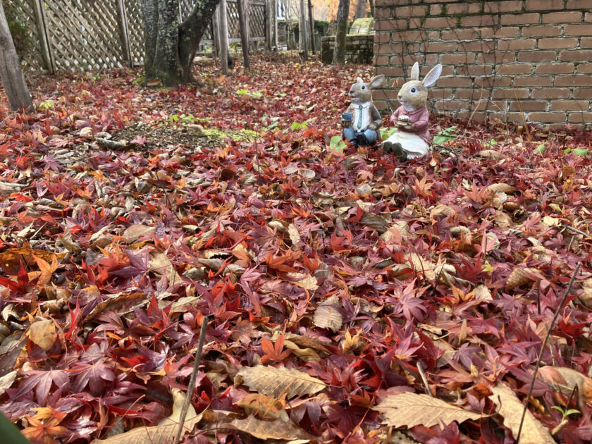 園内の紅葉していた葉っぱはふかふかの絨毯になっています。