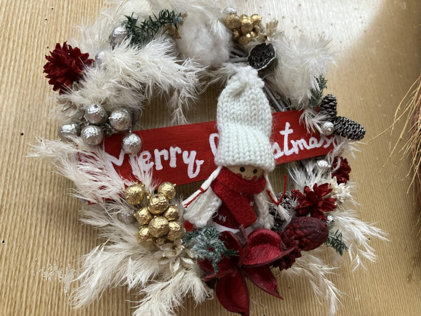 ヒツジ〜ズと遊んだあとは、「手作り体験工房」で暖まりながらクリスマスに向けてクリスマスリースなどのアレンジ作りもおすすめです。