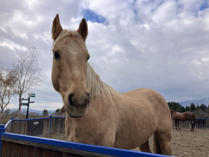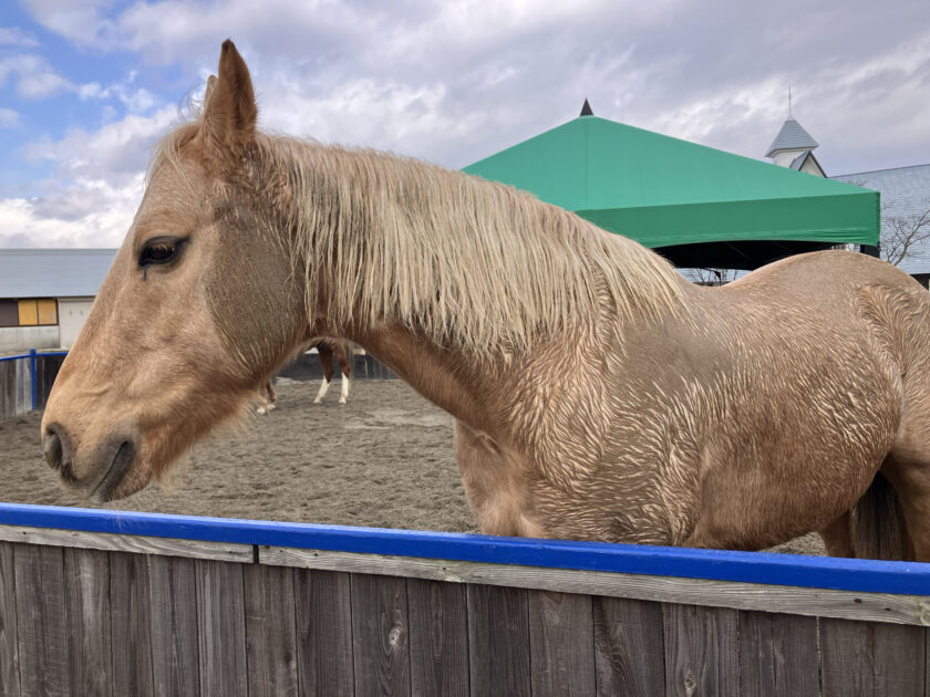 今年の秋に新たに牧歌の里のメンバーに仲間入りした「ロキシー」ちゃんは金髪のような明るい毛色の美しい馬です。