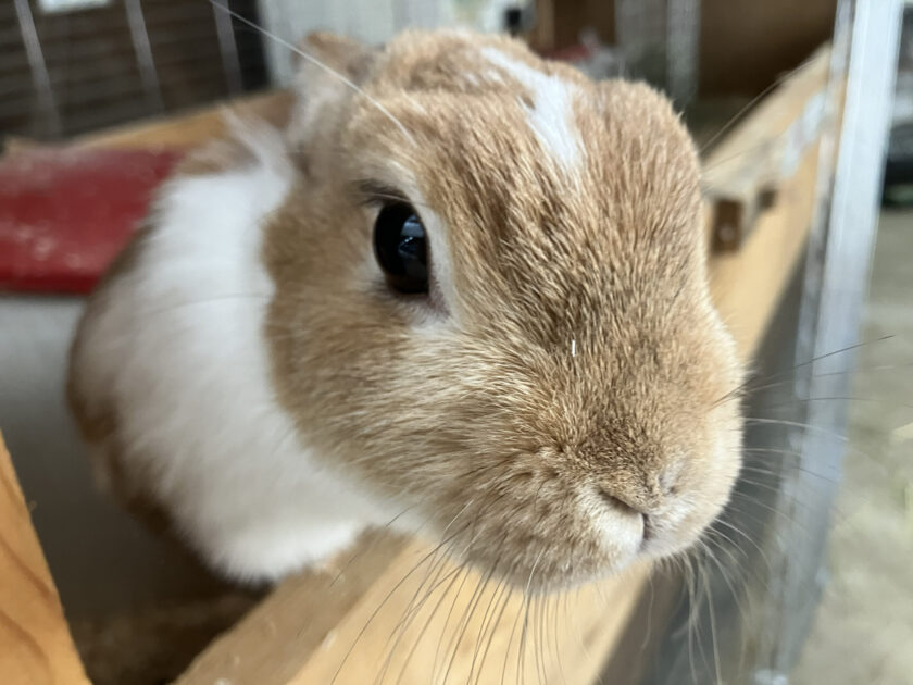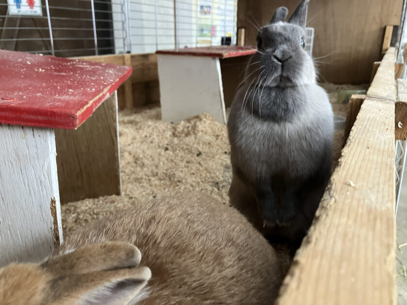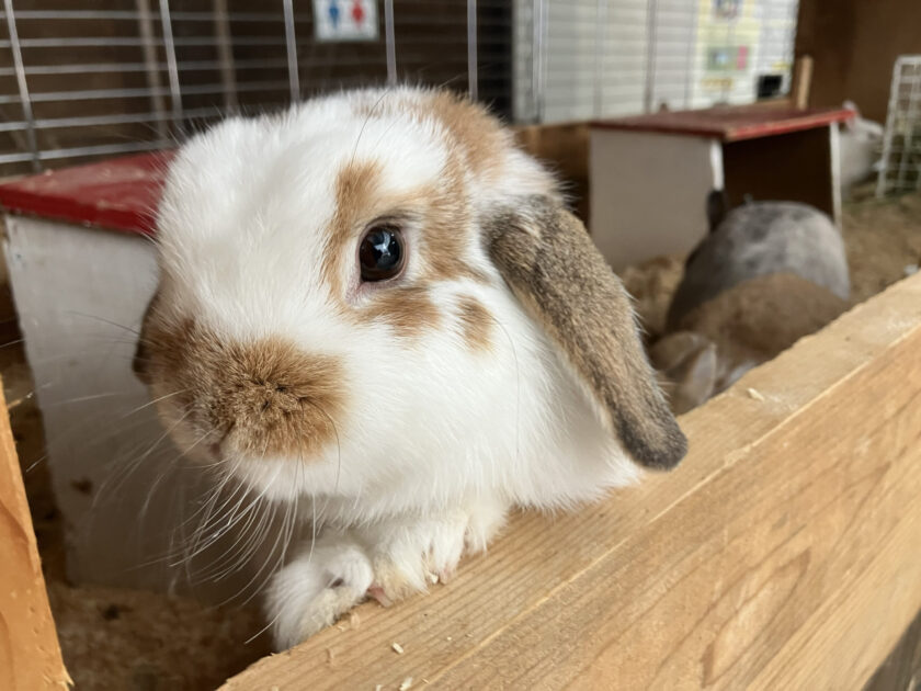 牧舎の中では、ウサギ〜ズが順番にひょっこり顔を出してきてかわいい!「あめ」ちゃんがヒョコっ!