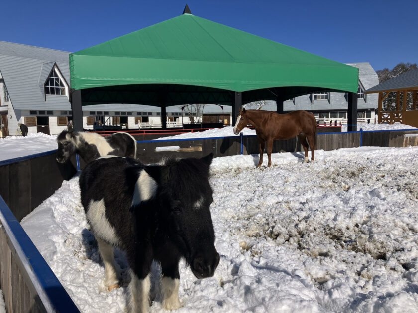 雪が積もっている時期は動物たちは大きな牧舎の建物の中で過ごしています。こちらも暖かいようでウトウト(o^^o)
