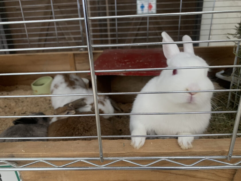 ちょっと寂しくなっていたウサギ〜ズは、人を見るとおやつの催促♪