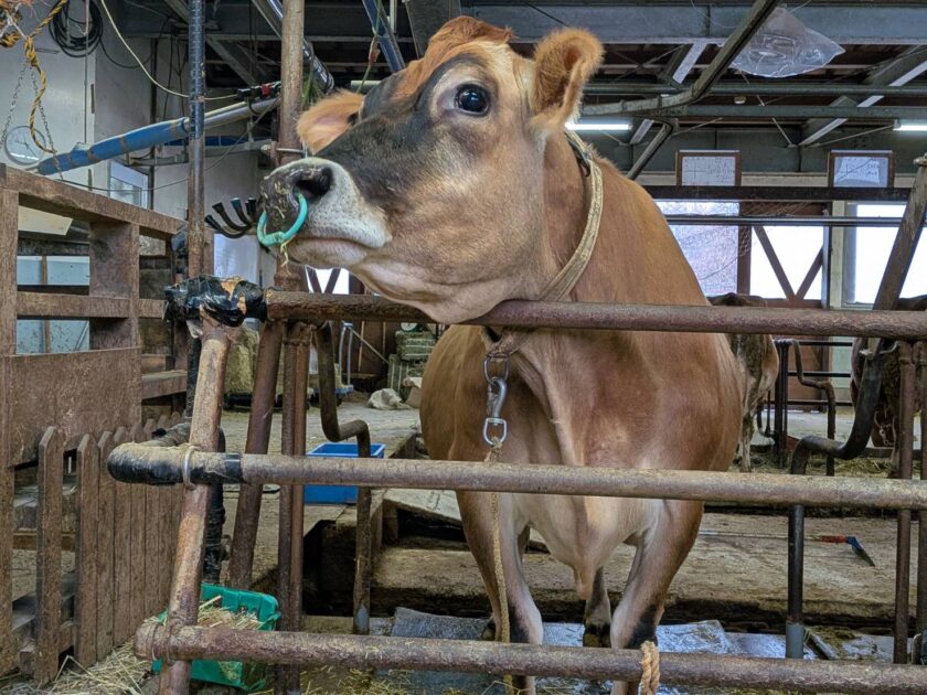 今日は雨なのでお部屋でのんびりしているジャージー牛たち。