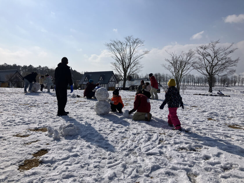 雪は少ないですが、広い範囲でうっすら積もっているので皆さん工夫して雪だるまを作られています。気温も過ごしやすいので「雪遊びデビュー」には、ちょうど良いのかも♪