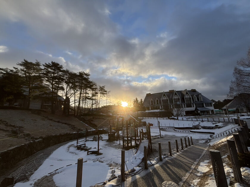 早朝の牧歌の里に初日の出が上がりました。毎日上がる太陽も、元日だけはなんだか神々しい光。