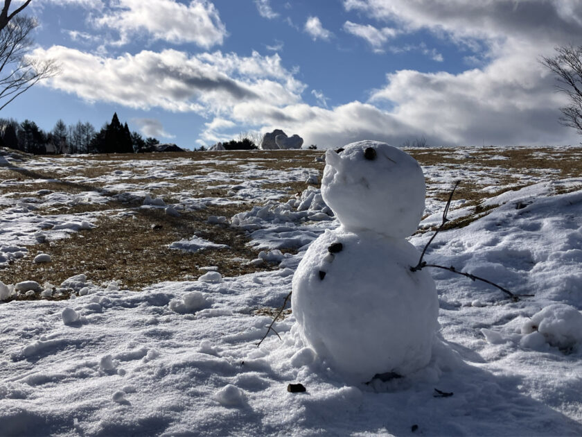 今シーズンは雪不足で雪遊びエリアの雪は芝生が見えている状態です。