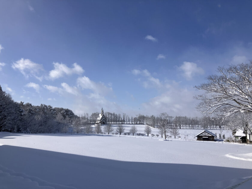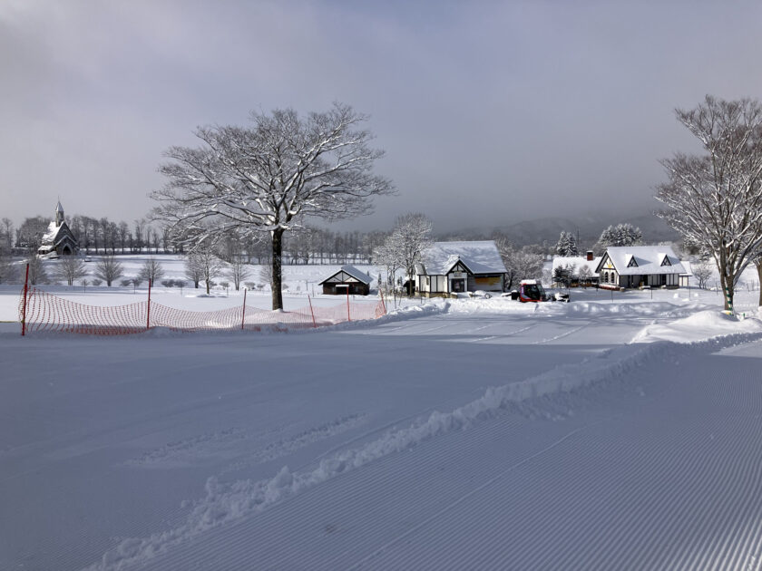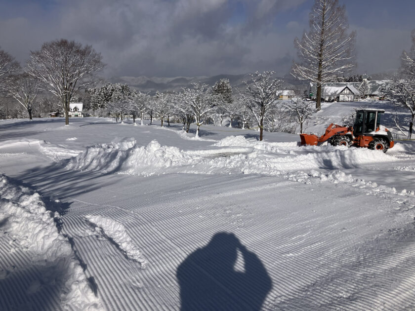 積雪量としては、まだまだ少ないですが、新しいふかふかの雪の上で遊べますよ〜!気温が高めなので過ごしやすく雪遊び日和です。