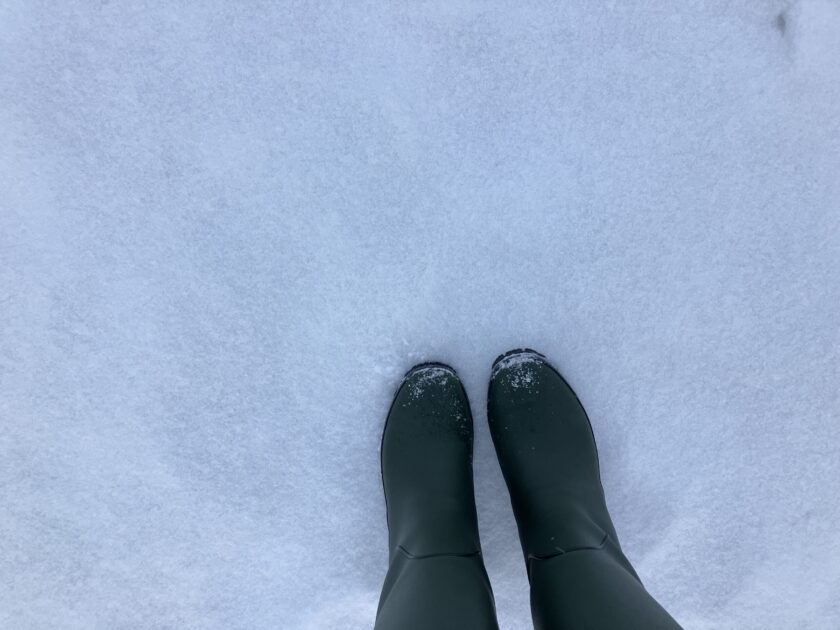 細かい雪が舞う朝。