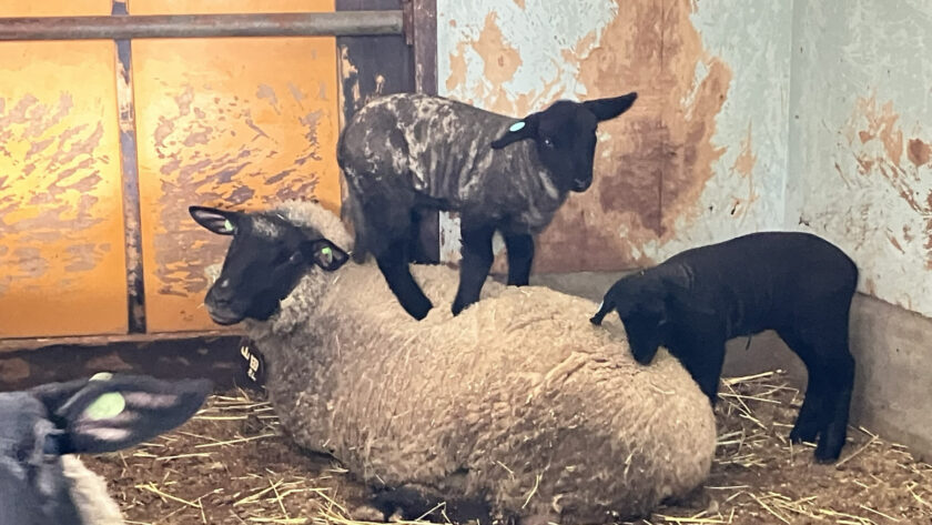 すくすくと育っている仔羊さんも、生まれた時は平均4kgくらいですが、今では大きな仔羊で15kg、小さな仔羊でも11kgになりました。羊の山田さんは、仔羊が背中で遊んでいてもどっしりしていて安定感があります。さすが!羊の山田さん!