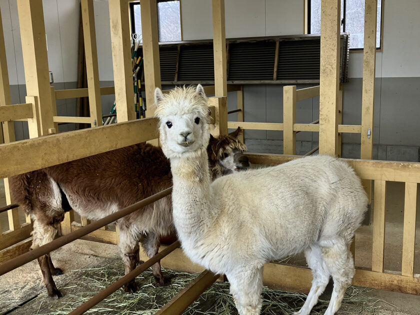アルパカハウスではシャイなアルパカさんたちへ、おやつあげ体験が出来ますよ〜。おやつを持っていないと、シャイな性格でそっぽを向いてしまいます。