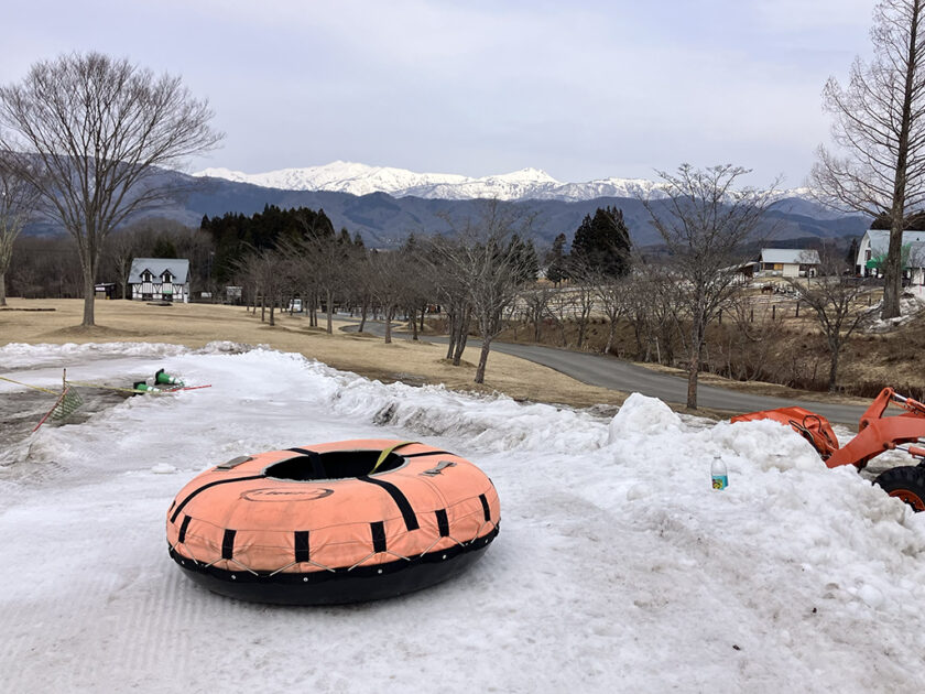 園内では、かろうじて雪が残っており、「ソリ滑り」と「スノーチューブショートコース」はまだ遊べます。今シーズンは一面の雪の風景は、見ることは出来なさそうです。