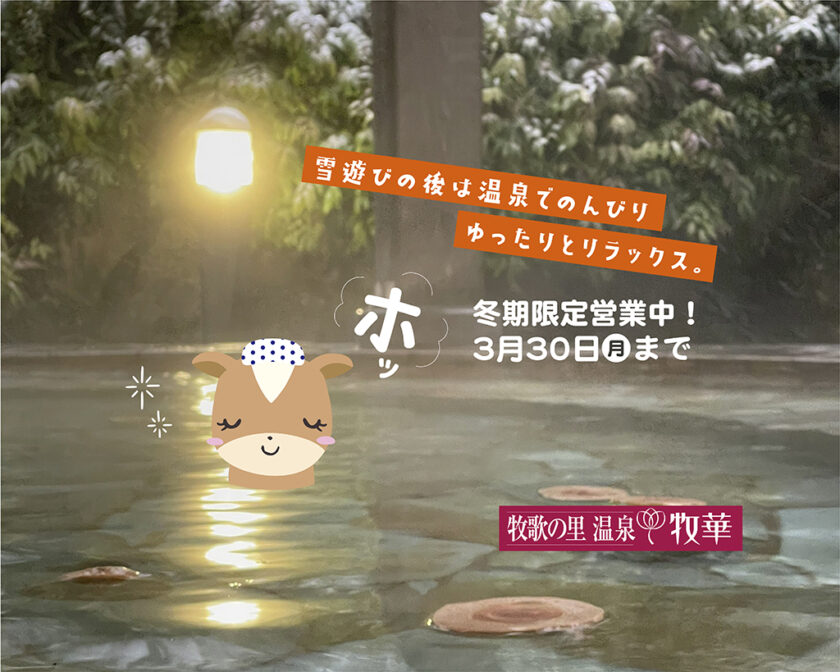 冬期限定の「温泉♨︎牧華」は3月30日まで!今の時期は、ゆったり時間を過ごせます。