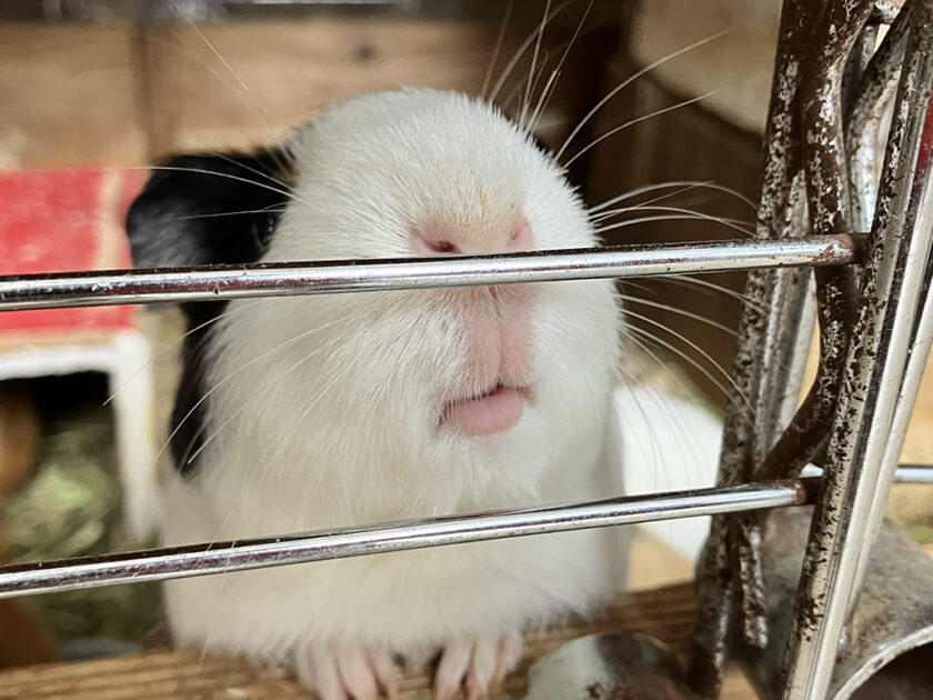牧舎内には「おやつ」のおねだりをしている、モルちゃんズ。かわいいお口に注目!