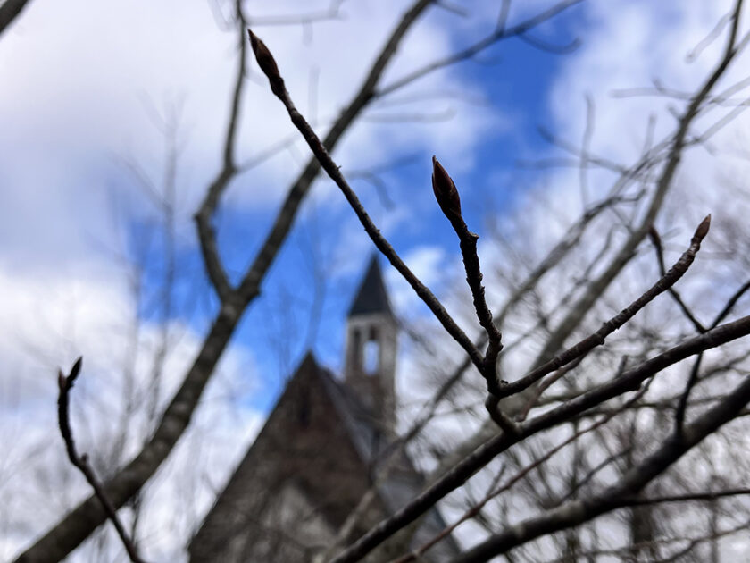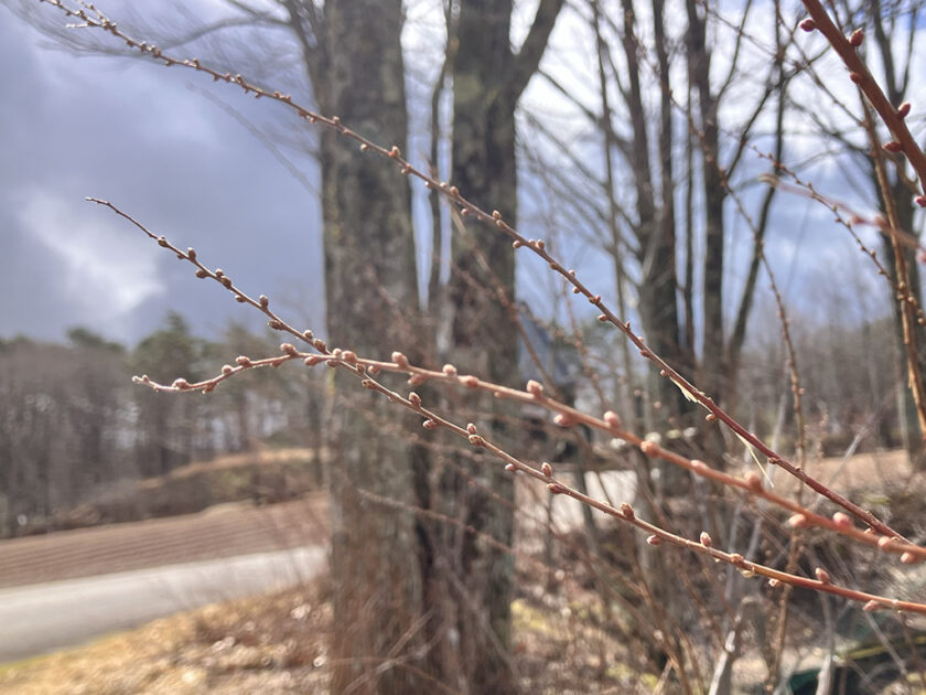 昨晩の久しぶりの雨で、畑や植物が潤っています。暖かな春の雨は、雪を解かし植物に栄養を与えます。硬い芽鱗に覆われた芽も、なんとなく膨らみを感じます。